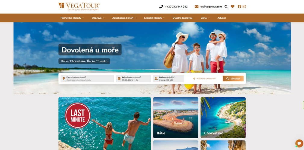 Moderní databáze, výkonné stroje a sofistikovaná architektura umožňuje rychlé vyhledání zájezdu dle požadovaných kritérií.